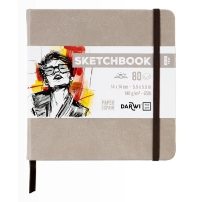 Darwi for You DF80014140004C Carnet Cousu Sketchbook 14x14 cm 140g 80 Feuilles Papier Dessin Blanc Couverture Rigide Taupe