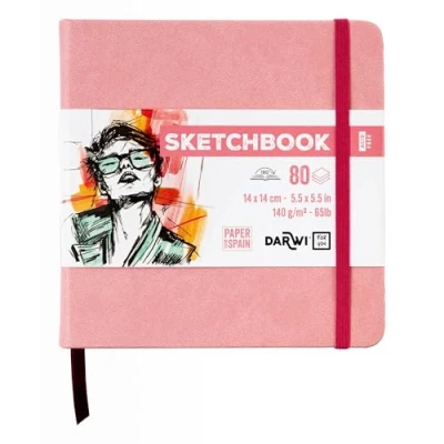 Darwi for You DF80014140009C Carnet Cousu Sketchbook 14x14 cm 140g 80 Feuilles Papier Dessin Blanc Couverture Rigide Rose Pâle
