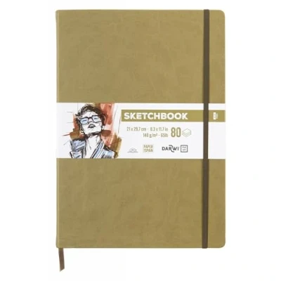 Darwi for You DF80021290005C Carnet Cousu Sketchbook A4 21x29,7 cm 140g 80 Feuilles Papier Dessin Blanc Couverture Rigide Kaki