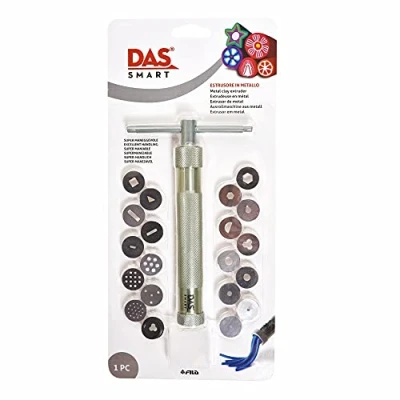 Metal clay extruder Features 20 different discs to experiment with Create intricate and beautiful clay projects Use with DAS Smart clay Measures 11.8 by 5.5 by .8 inches