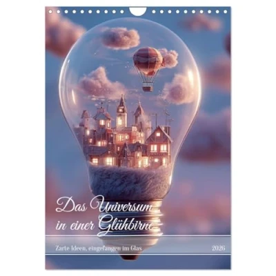 Das Universum in einer Glühbirne (Wandkalender 2026 DIN A4 hoch), CALVENDO Monatskalender: Außergewöhnliche Glühbirnen Motive, denen mithilfe von KI faszinierende Bilderwelten entstehen. Kreative Kompositionen, die Licht und Fantasie verbinden