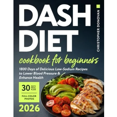 Dash Diet Cookbook for Beginners: 1800 Days of Delicious Low Sodium Recipes to Lower Blood Pressure and Enhance Health. Includes Full Color Photos a Comprehensive 30 day Meal Plan.
