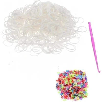 DasKid 600+ White Loom Bands Refill Pack with Hook Tool and Colorful S Clips Art Craft Refills for DIY Bracelet Making Kit (600+)