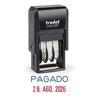 Practical small date stamp to mark the date of receipt of documents and correspondence in the office - date size 3.8 mm. The integrated ink cartridge does not dry and can be replaced easily and without getting dirty - Replacement ink cartridge reference 6/4850/2 Ink to mark according to DIN14145-2 quality standard - dries quickly, light resistant, does not fade and can not be removed without noticeable Clear color bands and easy to read - easy to adjust by means of wheels. 12 year band This seal is part of the Trodat concept of environmental sustainability in which the main range is environmentally friendly and climate-neutral.