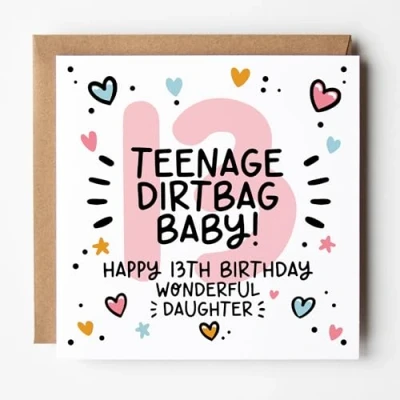 Daughter 13th Birthday Card Teenager for Cute & Trendy Design Blank Inside With Kraft Envelope (Age 13 (Teenage Dirtbag))