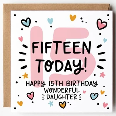 PERFECT FOR DAUGHTERS TURNING 15 – This sweet and playful birthday card makes an ideal keepsake for a 15-year-old Daughter who loves fun, bright, and stylish designs. All cards are printed on premium 350gsm FSC certified white card and come paired with a ribbed Kraft envelope. Blank inside, they offer space for your own message. Designed & Printed in the UK - Created by Lunella Stationery, a proudly independent British brand.