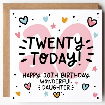 Daughter 20th Birthday Card Twenty Today for Cute & Trendy Design Blank Inside With Kraft Envelope (Age 20 (Twenty Today))
