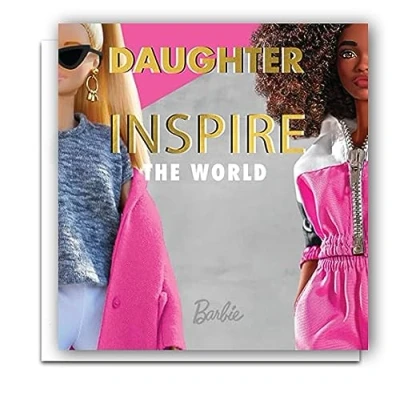 BARBIE: This Barbie Birthday Card reads on the front "Daughter INSPIRE The World (Barbie). Blank inside for your own message. OFFICIALLY LICENSED: Our fully licensed range of Valentine's Day cards, Mother's Day cards, Father's Day cards, Christmas cards, Birthday cards and occasional cards will bring a smile those receiving them. We also sell a wide variety of fully licensed gift bags, and wrapping paper as well! ENVIRONMENTALLY FRIENDLY: Great for the Environment: Our Cards are made of FSC Certified Paper that has passed the highest Environmental Regulation checks. All cards comes with an envelope which is fully recyclable. EUROPE'S NUMBER ONE: Brought to you by Europe's Number One Licensed Publisher: Every Danilo product is 100% Officially Licensed. This guarantees the product has been approved by the Acts themselves and features the current and most up to date designs DIMENSIONS: Dimensions of this products are 7 inches X 6 inches, each card comes with a suitable sized envelope as well