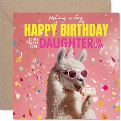 Daughter in Law Birthday Card Llam azing Cake Happy for from Father Dad Mother Mum, 145mm funny llama Bday Greeting Cards
