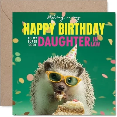 Daughter in Law Birthday Card Spike tacular Cake Happy for from Father Dad Mother Mum, 145mm funny hedgehog Bday Greeting Cards