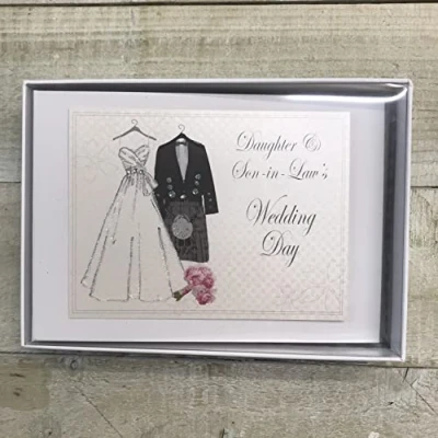 Daughter & Son in Law Wedding. Tiny Photo Album. Bride Groom Scottish Kilt Design. Hand Finished by WHITE COTTON CARDS (WK11T)