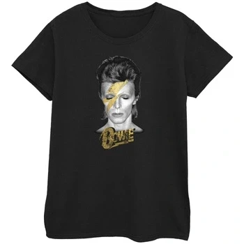 David Bowie Women's Aladdin Sane Gold Bolt T Shirt Black Small