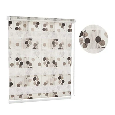 Day and Night Zebra Window Roller Blind With Leaves Print, 20 Width Sizes (65cm Wide x 200cm Drop)