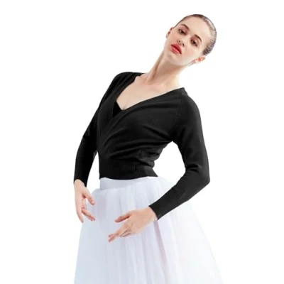 Daydance Women Wrap Dance Sweater Pink Soft Ballet Warm Up Jacket for Leotards black Medium