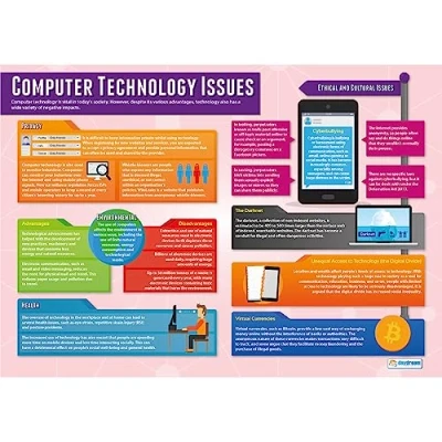 EDUCATIONAL CHART DESIGNED BY TEACHERS: Our Computer Technology Issues poster helps students to learn, engage and remember more information than ever before. Covering the basics of the computer technology issues topic, this unique school poster can play a vital role in improving both students' understanding and classroom décor. SUPPLEMENT KNOWLEDGE: Our educational school posters are colourful, beautifully illustrated and contain a huge amount of valuable information. This Computer Science poster is specifically designed to help students gain a greater understanding of the computer technology issues topic. The wall chart is a great resource for Schools, Classrooms, Computer Science Teachers, Students, Tutors, Home School Parents and Home School Kids. MAKE LEARNING FUN: Engaging, clear and colourful designs and images create a fun learning environment in which students can excel. Our amazing wall posters can help to increase students†interest towards Computer Science, while recapping any key information they've been taught. LARGE SIZE – IDEAL FOR READING FROM A DISTANCE: Our school wall charts are a generous size, measuring 594 mm x 850 mm (A1). This ensures all posters are easily readable from a distance. Our educational posters are a fantastic way of brightening and decorating any classroom and can easily complement every type of learning environment. THE UKâ€s NO. 1 PROVIDER: Brought to you by Daydream Education, the UK's leading provider of educational posters for schools, with a range that spans over 25 subjects across key stages 1 – 5. By combining a bold, visual approach with simple, concise information, we have provided over five million resources to more than 50,000 classrooms worldwide.