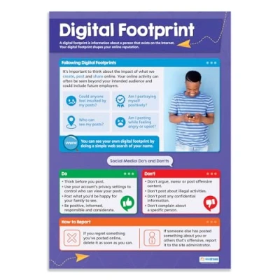Daydream Education Digital Footprint Online Safety Posters Gloss Paper measuring 850mm x 594mm (A1) Internet Class Charts