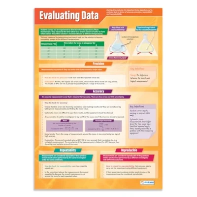 EDUCATIONAL CHART DESIGNED BY TEACHERS: Our Evaluating Data poster helps students to learn, engage and remember more information than ever before. Covering the basics of evaluating data with precision and accuracy, this unique school poster can play a vital role in improving both students' understanding and classroom décor. SUPPLEMENT KNOWLEDGE: Our educational school posters are colourful, beautifully illustrated and contain a huge amount of valuable information. This Science poster is specifically designed to help students gain a greater understanding of the ways to evaluate data with precision and accuracy. The wall chart is a great resource for Schools, Classrooms, Science Teachers, Students, Tutors, Home School Parents and Home School Kids. MAKE LEARNING FUN: Engaging, clear and colourful designs and images create a fun learning environment in which students can excel. Our amazing wall posters can help to increase students’ interest towards Science, while recapping any key information they've been taught. LARGE SIZE – IDEAL FOR READING FROM A DISTANCE: Our school wall charts are a generous size, measuring 850mm x 594mm (A1). This ensures all posters are easily readable from a distance. Our educational posters are a fantastic way of brightening and decorating any classroom and can easily complement every type of learning environment. THE UK’s NO. 1 PROVIDER: Brought to you by Daydream Education, the UK's leading provider of educational posters for schools, with a range that spans over 25 subjects across key stages 1 – 5. By combining a bold, visual approach with simple, concise information, we have provided over five million resources to more than 50,000 classrooms worldwide.