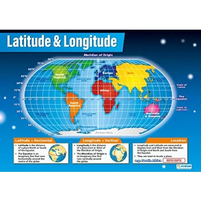 Daydream Education Latitude & Longitude Geography Posters Laminated Gloss Paper measuring 850mm x 594mm (A1) Classroom Charts