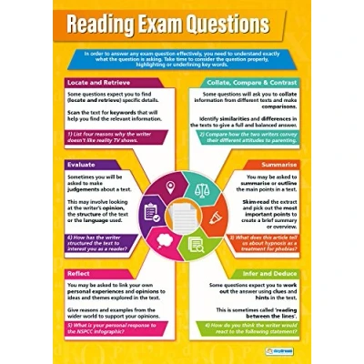 EDUCATIONAL CHART DESIGNED BY TEACHERS: Our Reading Exam Questions poster helps students to learn, engage and remember more information than ever before. Covering the importance of reading exam questions, this unique school poster can play a vital role in improving both students' understanding and classroom décor. SUPPLEMENT KNOWLEDGE: Our educational school posters are colourful, beautifully illustrated and contain a huge amount of valuable information. This English poster is specifically designed to help students gain a greater understanding of how to read exam questions effectively. The wall chart is a great resource for Schools, Classrooms, English Teachers, Students, Tutors, Home School Parents and Home School Kids. MAKE LEARNING FUN: Engaging, clear and colourful designs and images create a fun learning environment in which students can excel. Our amazing wall posters can help to increase students’ interest towards English, while recapping any key information they've been taught. LARGE SIZE – IDEAL FOR READING FROM A DISTANCE: Our school wall charts are a generous size, measuring 850mm x 594mm (A1). This ensures all posters are easily readable from a distance. Our educational posters are a fantastic way of brightening and decorating any classroom and can easily complement every type of learning environment. THE UK’s NO. 1 PROVIDER: Brought to you by Daydream Education, the UK's leading provider of educational posters for schools, with a range that spans over 25 subjects across key stages 1 – 5. By combining a bold, visual approach with simple, concise information, we have provided over five million resources to more than 50,000 classrooms worldwide.
