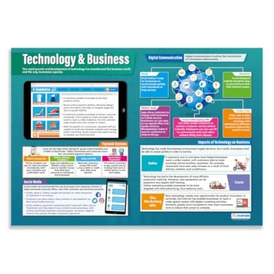 EDUCATIONAL CHART DESIGNED BY TEACHERS: Our Technology & Business poster helps students to learn, engage and remember more information than ever before. Covering the basics of how technology has impacted the business world, this unique school poster can play a vital role in improving both students' understanding and classroom décor. SUPPLEMENT KNOWLEDGE: Our educational charts are colourful, beautifully illustrated and contain a huge amount of valuable information. The business posters use attractive images and informative text, designed to help students’ gain a greater understanding of key topics. This educational business poster is a great resource for Schools, Classrooms, Business Teachers, Tutors, Students, Home School Parents and Home School Children. MAKE LEARNING FUN: Engaging, clear and colourful images create a fun learning environment in which students can excel. Our amazing wall charts can help to increase students’ interest towards Business Studies, whilst recapping key information. LARGE SIZE – IDEAL FOR READING FROM A DISTANCE: Our Business Studies charts are a large size, measuring 850mm x 594mm (A1). This ensures that the wall charts are easily readable from a distance. Our educational posters are a fantastic way of brightening and decorating any classroom and can easily complement every type of learning environment. THE UK’s NO. 1 PROVIDER: Brought to you by Daydream Education, the UK's leading provider of educational posters for schools, with a range that spans over 25 subjects across key stages 1 – 5. By combining a bold, visual approach with simple, concise information, we have provided over five million resources to more than 50,000 classrooms worldwide.
