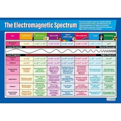 EDUCATIONAL CHART DESIGNED BY TEACHERS: Our Electromagnetic Spectrum poster helps students to learn, engage and remember more information than ever before. Covering the basics of the nature, applications and dangers of different waves on the electromagnetic spectrum, this unique school poster can play a vital role in improving both students' understanding and classroom décor. SUPPLEMENT KNOWLEDGE: Our educational school posters are colourful, beautifully illustrated and contain a huge amount of valuable information. This Science poster is specifically designed to help students gain a greater understanding of the nature, applications and dangers of different waves on the electromagnetic spectrum. The wall chart is a great resource for Schools, Classrooms, Science Teachers, Students, Tutors, Home School Parents and Home School Kids. MAKE LEARNING FUN: Engaging, clear and colourful designs and images create a fun learning environment in which students can excel. Our amazing wall posters can help to increase students’ interest towards Science, while recapping any key information they've been taught. LARGE SIZE – IDEAL FOR READING FROM A DISTANCE: Our school wall charts are a generous size, measuring 850mm x 594mm (A1). This ensures all posters are easily readable from a distance. Our educational posters are a fantastic way of brightening and decorating any classroom and can easily complement every type of learning environment. THE UK’s NO. 1 PROVIDER: Brought to you by Daydream Education, the UK's leading provider of educational posters for schools, with a range that spans over 25 subjects across key stages 1 – 5. By combining a bold, visual approach with simple, concise information, we have provided over five million resources to more than 50,000 classrooms worldwide.