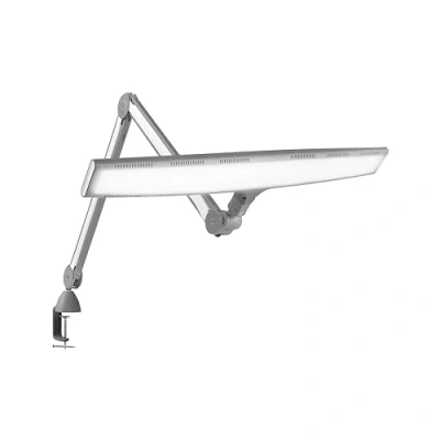 MAXIMUM BRIGHTNESS & WIDE COVERAGE: As the brightest lamp in the Daylight range, the Luminos delivers an extraordinary 4,500 Lux (at 30cm) and 1,960 Lumens. The extra-wide 65cm (25.5”) shade provides an exceptionally broad and even spread of light, making it the ultimate solution for large workbenches and expansive studio desks. SUPERIOR COLOR ACCURACY (95+ CRI): Equipped with 120 high-performance Daylight LEDs, this lamp features a 95+ Color Rendering Index (CRI) and a 6,000K color temperature. See colors exactly as they appear in natural northern-sky daylight, essential for professional artists, architects, and precision industrial inspections. EXTENDED 112cm (44”) LONG REACH: The heavy-duty industrial arm features reinforced joints and a massive 112cm (44”) reach. Effortlessly glide the light into position with one hand; the precision-engineered internal springs ensure the lamp stays exactly where you place it without drifting. 3-STEP TOUCH DIMMING: Tailor your lighting to the task at hand with a tactile 3-step touch dimmer. Switch easily between 4,500 Lux for high-precision work, 3,000 Lux for standard tasks, and 2,000 Lux for everyday desk work, all while reducing glare and eyestrain. ERGONOMIC & ROBUST BUILD: Designed for heavy-duty professional use, the Luminos features a multi-position head joint that allows the shade to be angled vertically, horizontally, and laterally. Includes a high-quality G-clamp for secure mounting to any desk or table up to 5.5cm thick.