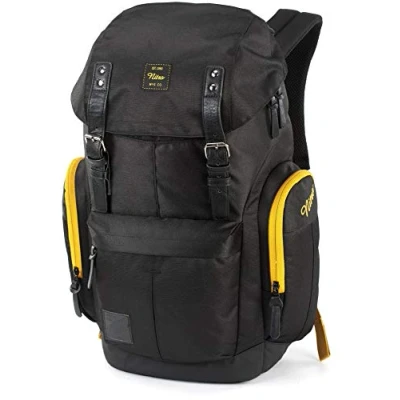 Daypacker Alltagsrucksack im Retro Look mit Gepolstertem Laptopfach, Schulrucksack, Wanderrucksack oder Streetpack, Größe und Schnitt ideal für Frauen, 32 L, Golden Black