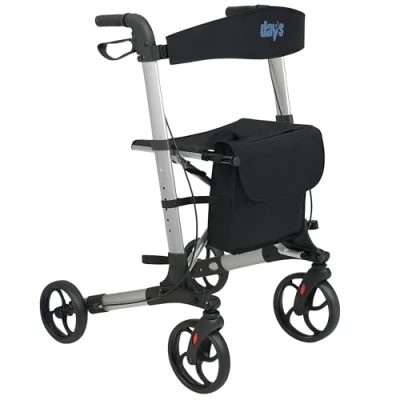 Days Deluxe Lightweight Folding Four Wheel Rollator, Easy Storage and Travel, Carry Bag, Mobility Aids, Adjustable Seat Height 61cm