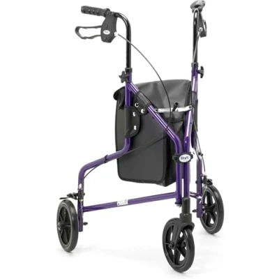 Days Lightweight Aluminium Folding 3 Wheel Tri Walker with Lockable Brakes and Carry Bag, Adjustable Height, Limited Mobility Aid, Purple (Eligible for VAT relief in the UK)