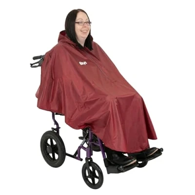 Days Wheelchair Poncho Waterproof Rain Cover for Users, Full Body Protection with Hood, Zip Closure & Rear Vents Lightweight, Easy Fit Mobility Burgundy, 133 x 100cm