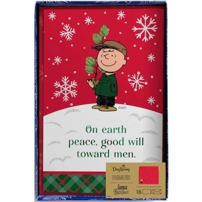 Dayspring Peanuts Peace Good Will Toward Men 18 Christmas Boxed Cards and Envelopes, KJV
