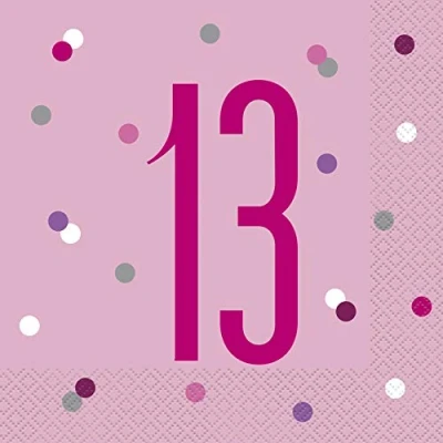 PINK & SILVER DESIGN: Dazzling 13th glitz pink & silver luncheon napkins (16cm) feature an exquisite combination of pink and silver hues, adding a touch of sparkle and glam to any celebration or event. STURDY & DURABLE MATERIAL: These 16ct napkins are made from high-quality material, ensuring they hold up well throughout your event, preventing any spills or mess, and keeping your table looking pristine. PERFECT FOR MULTIPLE OCCASIONS: These pink & silver luncheon napkins are ideal for enhancing a sweet celebration, birthday party, bridal shower, or any special event that requires a touch of elegance and sophistication. SOFT & LUXURIOUS: Our soft napkins not only look chic, but they also provide a gentle touch for your guests, allowing them to wipe their hands or clean up any spills with ease. BOOST YOUR EVENT'S AESTHETIC: Our dazzling glitz pink & silver luncheon napkins (16cm) are crafted with care, providing you with a reliable and stylish option for your celebrations., Manufacturer: Unique