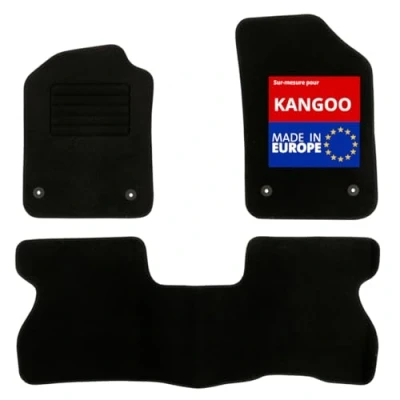 Custom-made for RENAULT Kangoo 1 (10/1997 to 12/2007) 2 car mats for front + 1 car mat with bridge for rear Exclusive anti-slip system : AUTOGRIP Original fixation clips Needled carpet 900g/m² - finish in velour: constructor quality