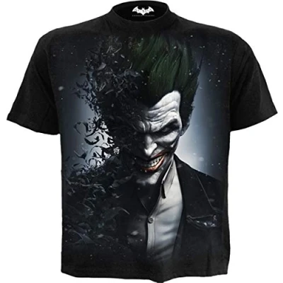 Official Licensed Product from Warner Bros. DC Comics. The twisted smile of Batman’s most notorious rival is illuminated down one side of this design, while the other half dissolves into bat silhouettes. T-Shirt Black is made of Top Quality 100% Cotton, Jersey using skin friendly, Azo-free, Reactive dyes. Established since 1990, Spiral has been consistently rolling out cool merchandise for the Gothic and Heavy Metal markets. Spiral is not just a brand …it's an ATTITUDE! Where 'Art meets Fashion', Spiral artwork covers a range of themes from tribal, gothic, horror, fantasy and fetish to the more cute and cuddly along with Spiral's own take on various TV and Film characters, all screen printed to last. Just one of the unique from a huge range of Alternative Fashion products from Spiral!
