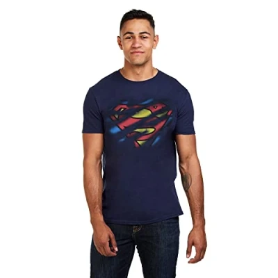 DC Comics Men's Superman Torn Logo T Shirt, Navy Blue, Large