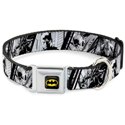 DC Comics Pet Collar, Dog Collar Metal Seatbelt Buckle, Batman Hush Pose Sketches Black White, 16 to 23 Inches 1.5 Inch Wide