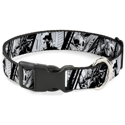 DC Comics Pet Collar, Dog Collar Plastic Buckle, Batman Hush Pose Sketches Black White, 11 to 16.5 Inches 1.0 Inch Wide