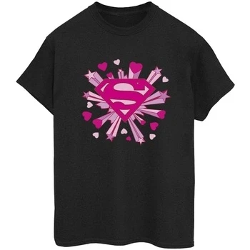 DC Comics Women's Superman Pink Hearts and Stars Logo Boyfriend Fit T Shirt Black Small