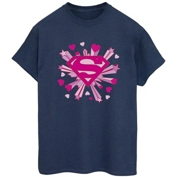 DC Comics Women's Superman Pink Hearts and Stars Logo Boyfriend Fit T Shirt Navy Blue Medium