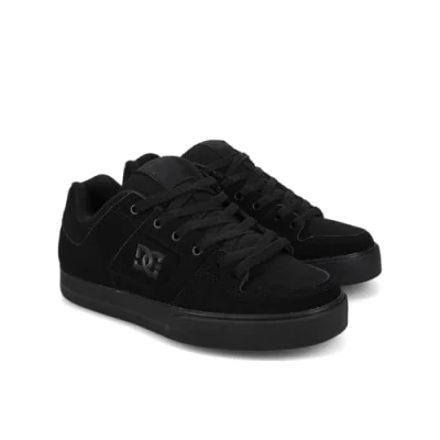 Supereight* The DC Shoes Pure is exactly the type of skate shoe you would expect from DC with simple classic panelling and distinctive DC embroidered branding on the quarter panel and tongue * This iteration of the Pure boasts an all-black colour makeup with pirate black detailing * The sole unit on the Pure is a solidly built, grippy rubber outsole with DC's trademark "pill" tread pattern, with an impact-resistant mid-sole that helps protect and cushion your feet * There are vent holes to aid breathability and there is extra padding in the tongue and collar for added support and comfort