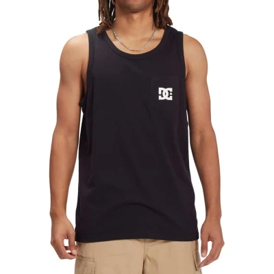 * DC Shoes Star Pocket Vest is a quality build and sleeveless construction vest with a classic graphic branding print on the pocket, placed to the left of the chest * Flaunting a black cotton fabrication with a white graphic print * Elasticated and ribbed crew-neckline * Vertical clamp detail on the hem * 100% Cotton * Fit is regular and true to size