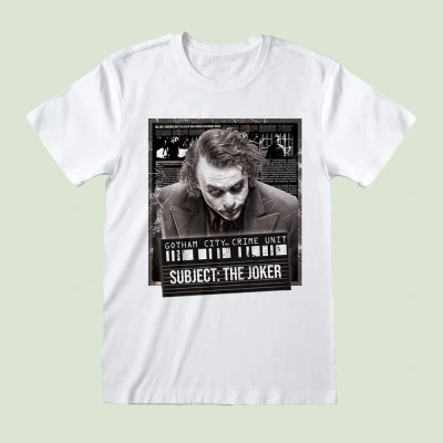 Bring a touch of mischievous charm to your wardrobe with the DC The Dark Knight: Joker Mug Shot T-Shirt. This officially licensed design features a bold and quirky Joker mug shot graphic that speaks volumes about your playful side. Made from 100% cotton, this unisex tee offers exceptional comfort and a relaxed fit, making it an ideal choice for casual outings or comic conventions. Whether you’re a fan of the Dark Knight or just love a dash of mischief, this t-shirt is ready to turn heads. Offering a delightful combination of style and wit, this t-shirt is not just a piece of clothing, but a statement. Designed for movie buffs and DC aficionados alike, it serves up a slice of cinematic history while ensuring you'll stay cool and comfortable through all your adventures. The durability of the fabric means it’ll withstand countless wears and washes, retaining its shape and vibrant print, so you can embrace the Joker’s mischief time and time again. With its versatile unisex fit, this t-shirt makes a fantastic gift for anyone wanting to add some comic book flair to their collection. The Joker Mug Shot T-Shirt is ready to brighten up your wardrobe, offering a fun twist to your everyday look. Get this tee and unleash your inner villain, showcasing your love for quirky fashion and killer style!