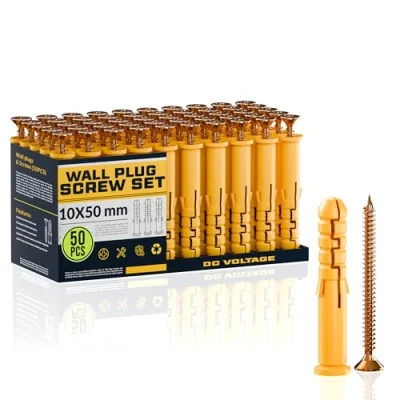 DC VOLTAGE 50 Pcs Wall Plugs and Screws Set 10mm x 50mm Concrete Fixings Expansion Anchors Kit Hanging Mounting TV Mount Drywall Self Tapping Screw Plug