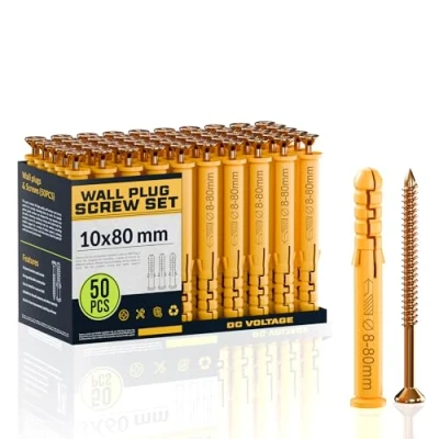 DC VOLTAGE 50 Pcs Wall Plugs and Screws Set 10mm x 80mm Concrete Fixings Expansion Anchors Kit Hanging Mounting TV Mount Drywall Self Tapping Screw Plug