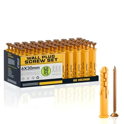DC VOLTAGE 50 Pcs Wall Plugs and Screws Set 6mmx 30mm Concrete Fixings Expansion Anchors Kit Hanging Mounting TV Mount Drywall Self Tapping Screw Plug