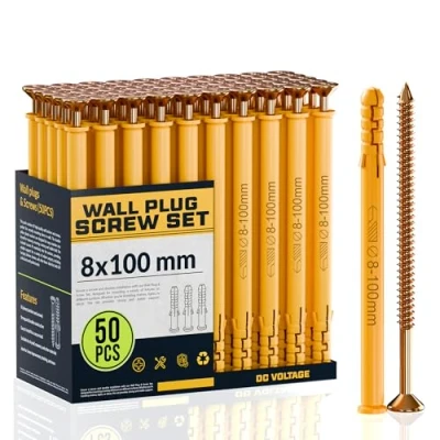 DC VOLTAGE 50 Pcs Wall Plugs and Screws Set 8mm x 100mm Concrete Fixings Expansion Anchors Kit Hanging Mounting TV Mount Drywall Self Tapping Screw Plug