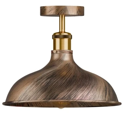 DC Voltage Brushed Copper Rustic Ceiling Light Lamp Fixture Metal Shade 36cm Industrial Modern Semi Flush Mount Pendant Fitting for Bedroom Living Room