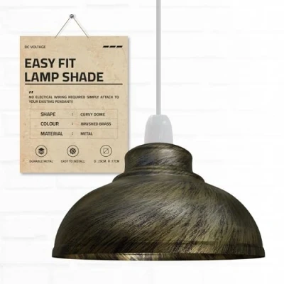 DC Voltage Industrial Ceiling Pendant Light Shades Retro Style Curvy Dome Shaped lamp Metal Easy fit for fixtures (Brushed Brass)