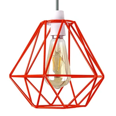 DC VOLTAGE Modern Metal Diamond Shape Easy Fit Geometric Bulb Guard Cage Pendant Light Wire Lampshade for Kitchen, Living Room and Restaurant (Red)