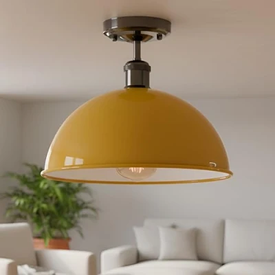 Design: semi flush ceiling Light with a Dome shape shade Vintage Retro style Look ,Available Different finish and simple and elegant ,It’s not easy to peel off. MaterialCeiling Rose and Lamp Holder made of High-quality Metal, Carefully Painted, High Hardness, Not Easy to Deform, Not Easy to Rust, Corrosion Resistance, and Can Protect the Bulb Well. Bulb type : Compatible with any incandescent, LED bulbs, Halogen, Compact Fluorescent with E27 base. Easy install: As all our products come with a convenient installation pack, it is very easy and convenient to install. Wide application : These lights perfectly suitable for loft, staircase, porch, country house, restaurant, cafe bar, living room, kitchen, dining room, bedroom, personalised office, etc